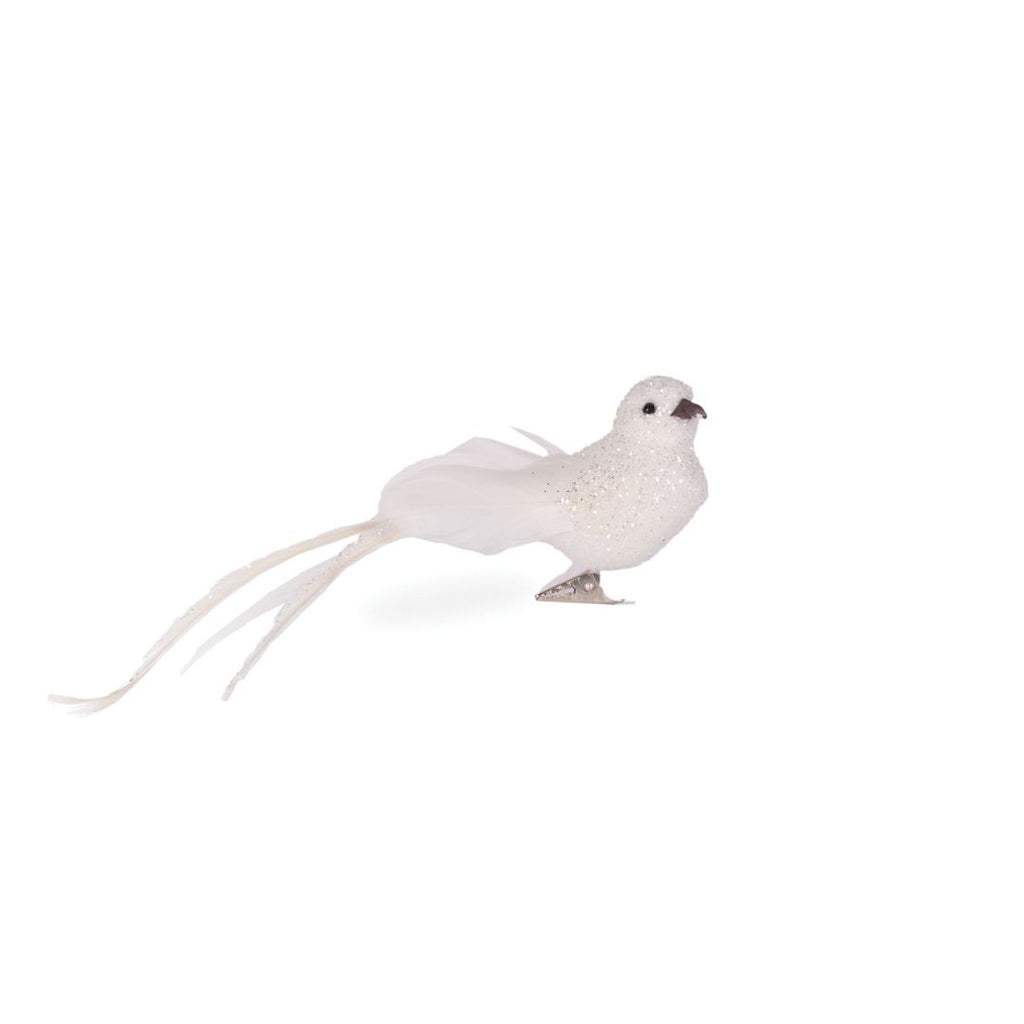 White Long Tailed Feather Bird with Clip