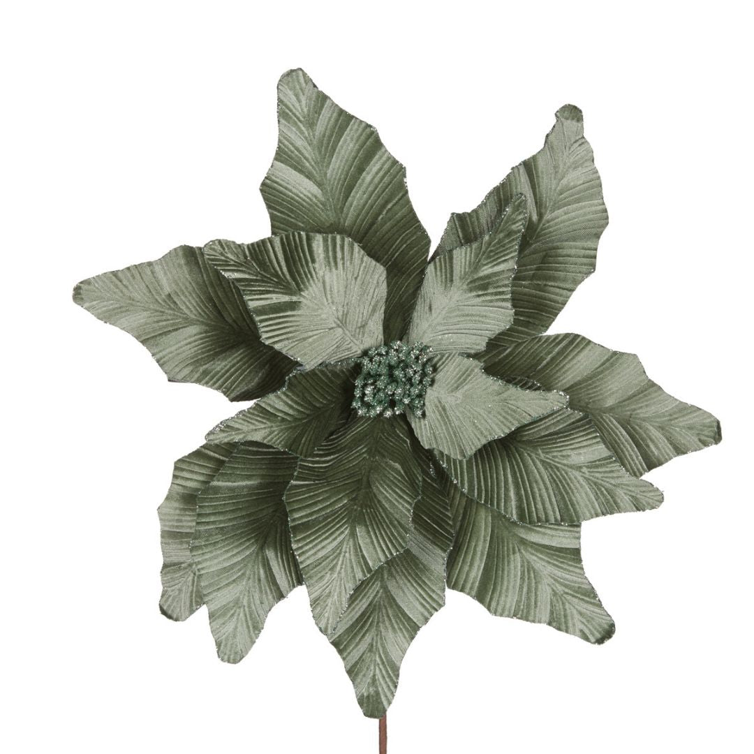 Bring sophisticated greenery to your festive décor with the Luxe Sage Poinsettia from Holly and Ivy. This single-stem decoration features beautifully detailed petals in a soft sage green hue, measuring 50cm in diameter and 40cm in length.
