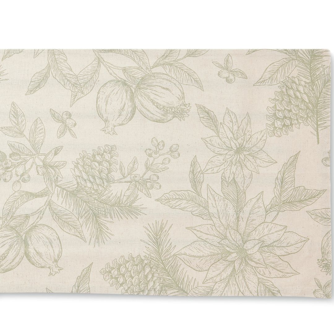 Poinsettia Olive/Flax Table Runner 40 x 200cm