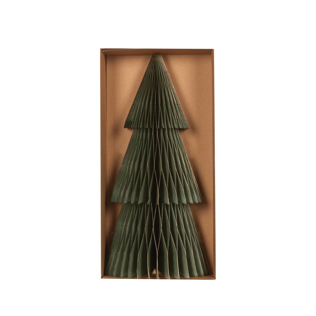 Standing 33cm high, this beautifully folded paper tree in a soft sage green tone offers a modern and refined look. Perfect for creating height in your Christmas displays, styling on a mantel or sideboard, or pairing with the shorter version for a coordinated set. Presented in a gift box for easy gifting or storage.